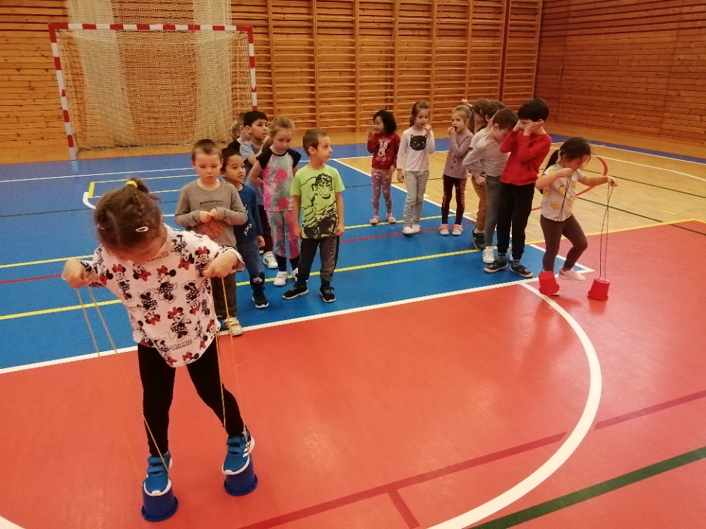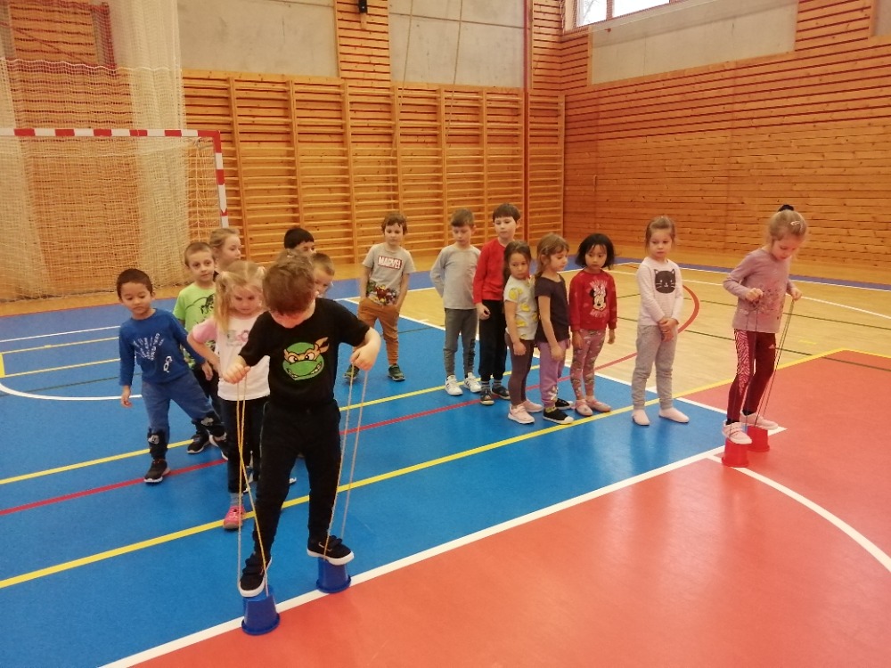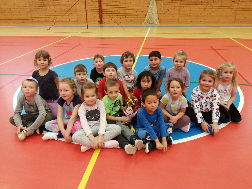 Soutěživé hry v tělocvičně školy