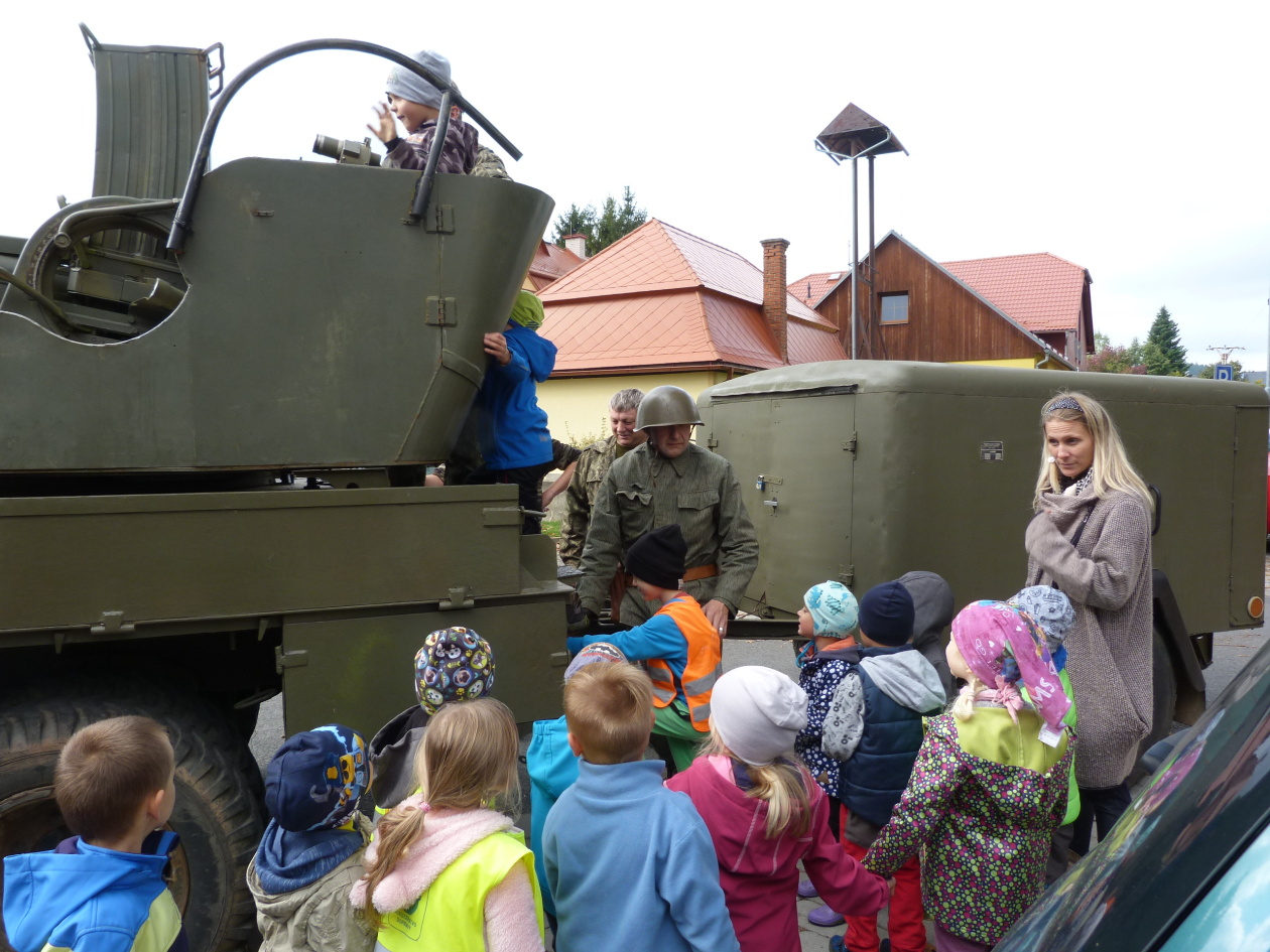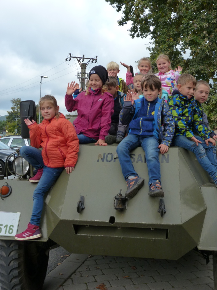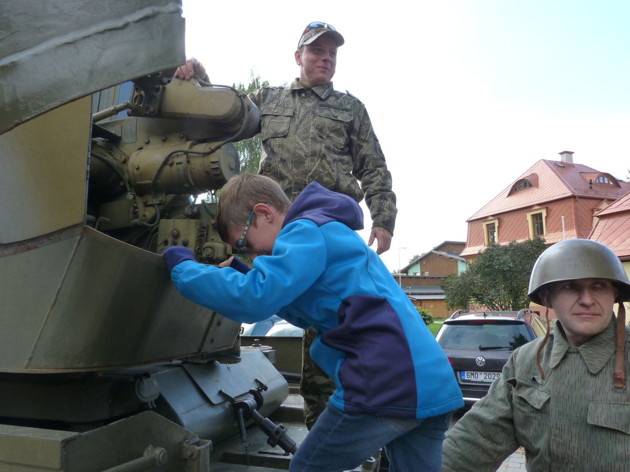 Při svém přesunu na akci do Starého Města pod Sněžníkem, nás navštívili dobrovolníci s obrněnou technikou pod vedením rodiny Dudkových.